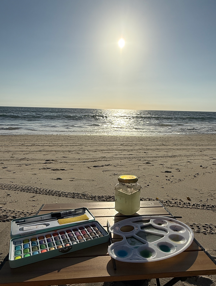 I have entered my water color by the ocean era. I have been digging the different days and conditions I have tired to capture. I can't get enough of sunsets and ocean air.